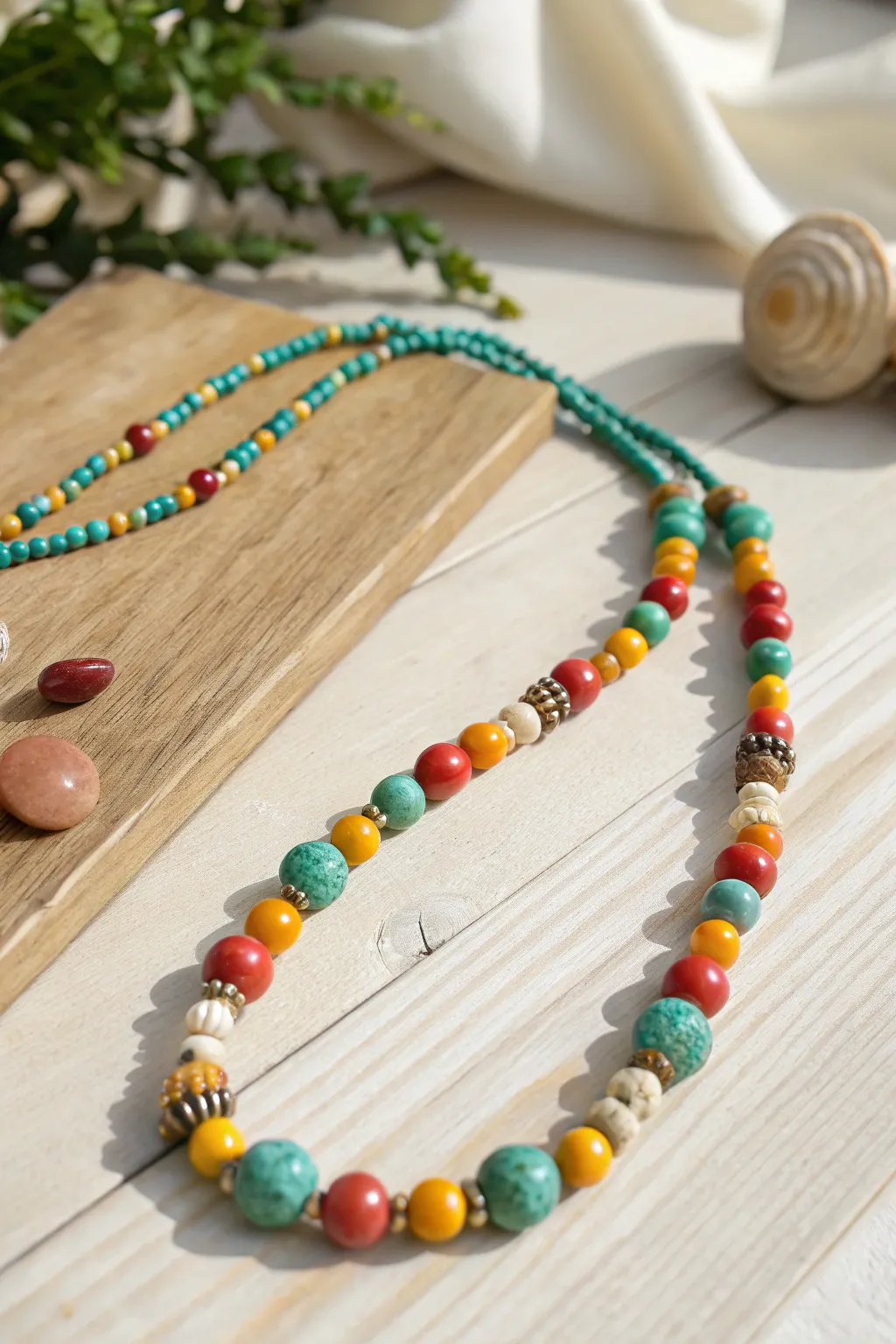 Arranging multiple bead strands produces a stacked sophistication impression. Once, I layered three strands of differing lengths and instantly felt like a free-spirited trendsetter!