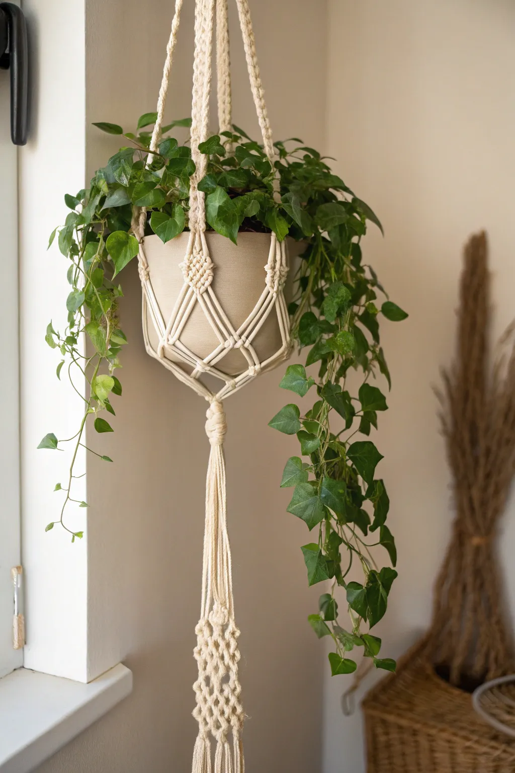 Display your greenery with a macrame plant display. These are not only practical but also add a touch of boho flair with their intricate knotting.