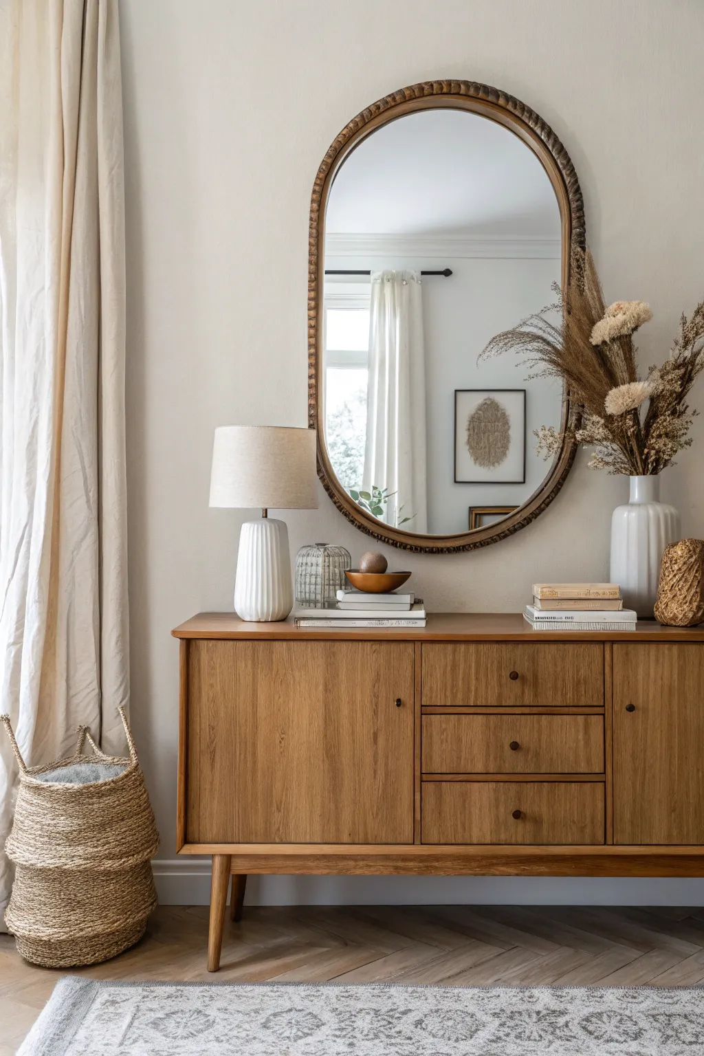 Transform your space with a vintage mirror: the perfect blend of Scandinavian minimalism and boho charm.