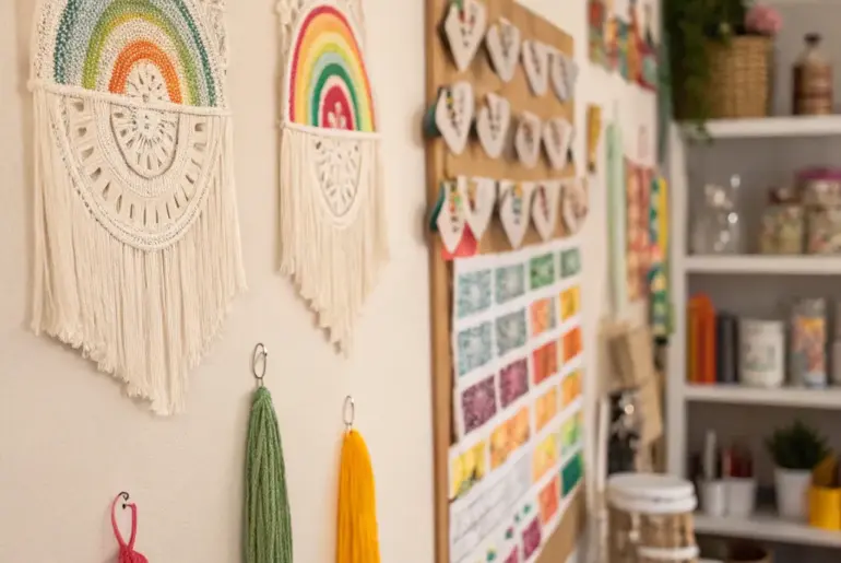Designing the ideal craft area is all about finding the balance between imagination and utility. Let’s explore some inspiring wall decor ideas that will turn your space into a creative sanctuary. Attached Desks as Trim An attached desk enhances space and style. Attached desks can function as both a workspace and a decorative element. I frequently suggest this for smaller spaces where functionality is key. Check these products out: Space-Optimizing Attached Desk: Optimize your craft…