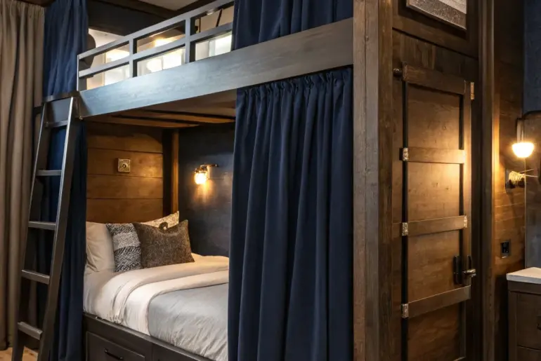 Integrated bunk beds present a wonderful opportunity to conserve space while injecting a distinctive design flair into any space. Whether your goal is to fashion a comfortable hideaway for youngsters or a chic haven for visitors, the possibilities are practically limitless. Intimate Hideaway Bunk Beds Experience the mastery of craftsmanship with these intimate hideaway bunk beds, where sophistication embraces comfort. Change a section of the space into a cozy hideaway using integrated bunk beds. I…