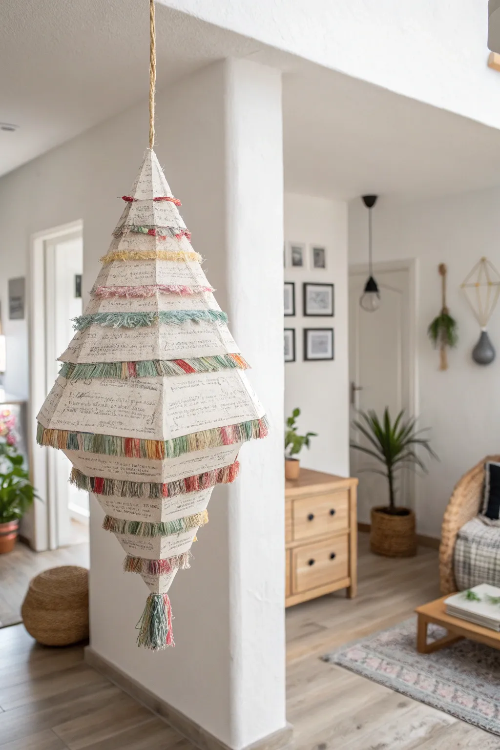 Incorporate diverse textures using layered crepe paper, creating a colorful, textured pinata. I fashioned a rainbow variant for a friend’s party, and it was an absolute delight to touch!