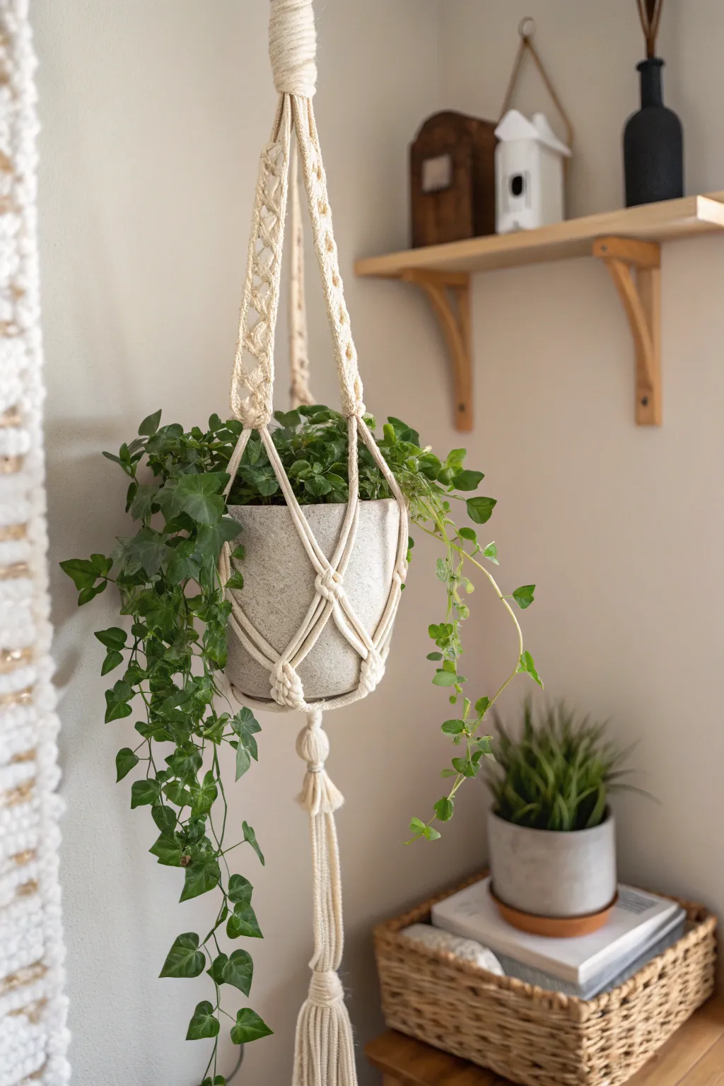 - Macramé Ornaments: Enhance your design with exquisite timber ornaments, appending a singular accent to your flora holders.