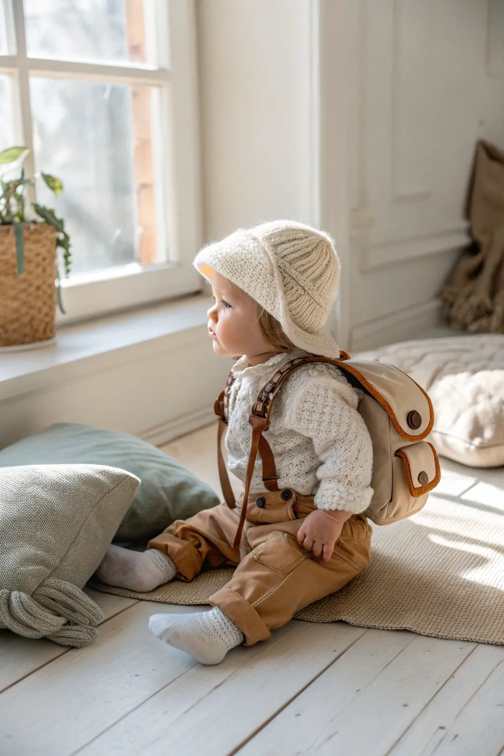 - Miniature Venture Rucksack: Finalize the aesthetic through a petite, elegant rucksack accommodating your infant pathfinder’s essentials.