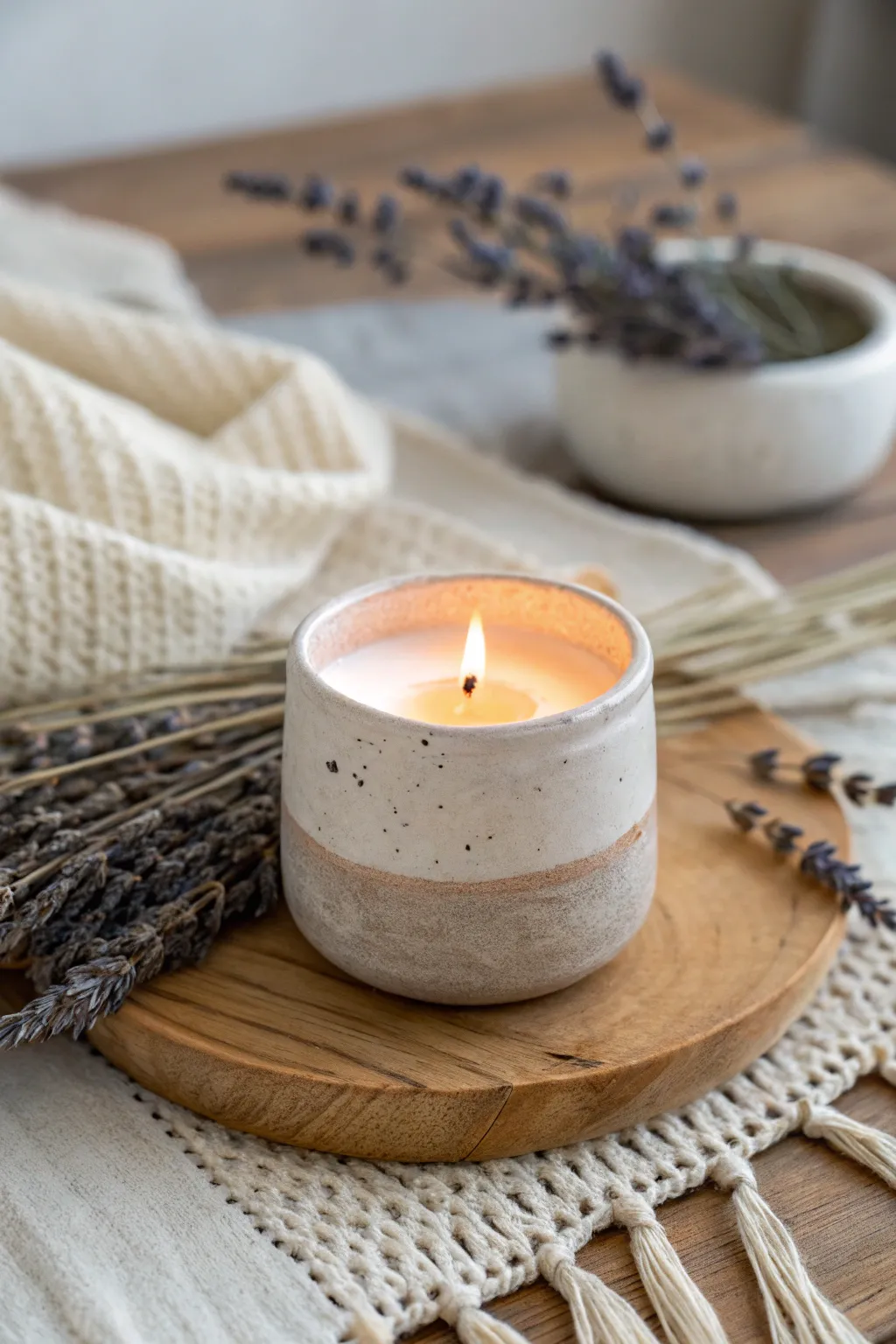 - Container Flames: Add grand style to your decoration using container flames that mix style and calm smells.