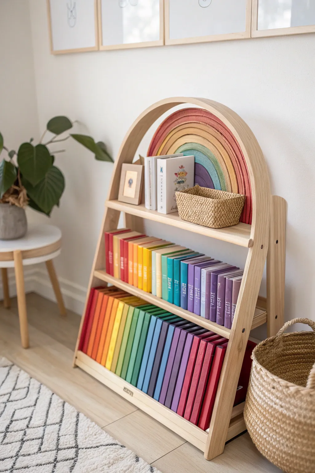 - Timber Rainbow Decor: Enhance room aesthetics with a charming wooden rainbow, perfect for a playful book corner.