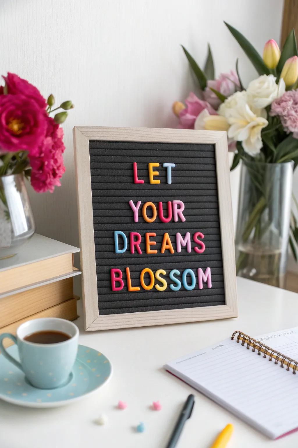 Springtime is a period of rebirth, filling our lives with revitalizing energy and lively hues. I find expressing this through a message board using motivational spring quotes is the perfect way to inject joy into any area.
