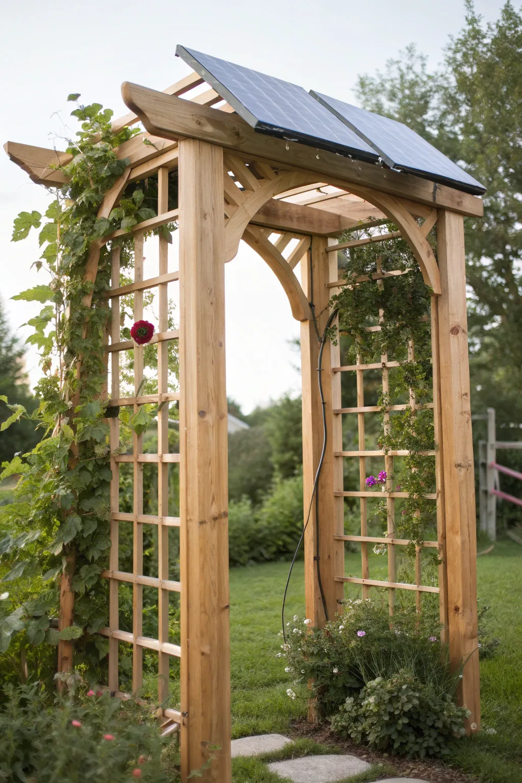 Harness the sunlight with panache – a solar array garden arch that coalesces the outdoors with innovation.