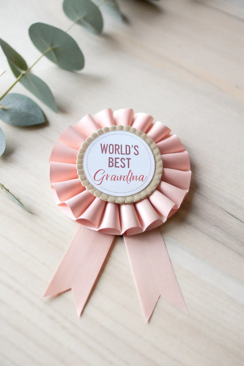 Make stock rosettes that say ‘World’s Best Grandmother/Grandfather’ for a playful touch. These are generally remarkably easy to make with vibrant stock and a little bit of glue.