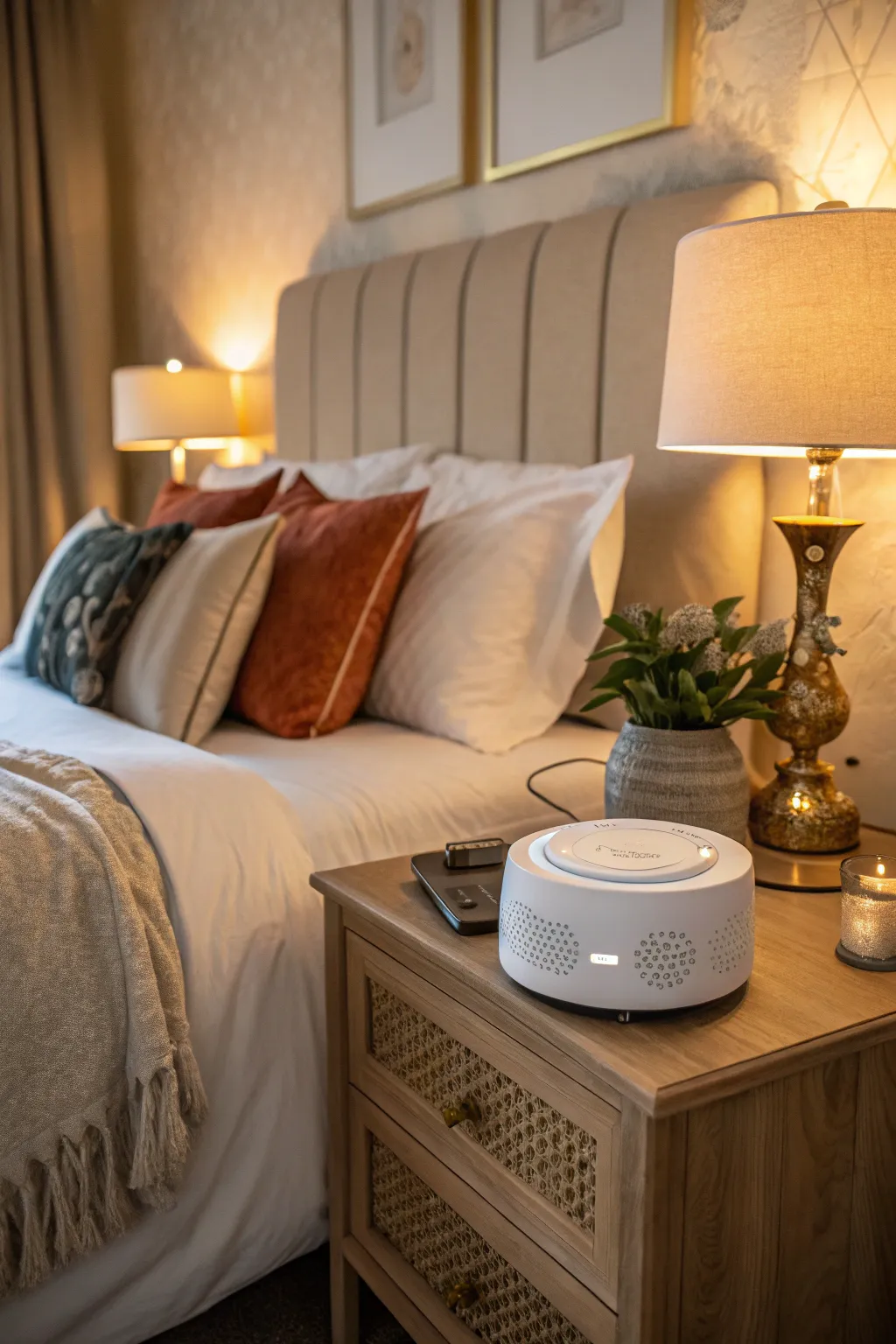 - Compact Sleep Sound Device: Transform the bedroom atmosphere with compact sound therapy for enhanced sleep and tranquility.