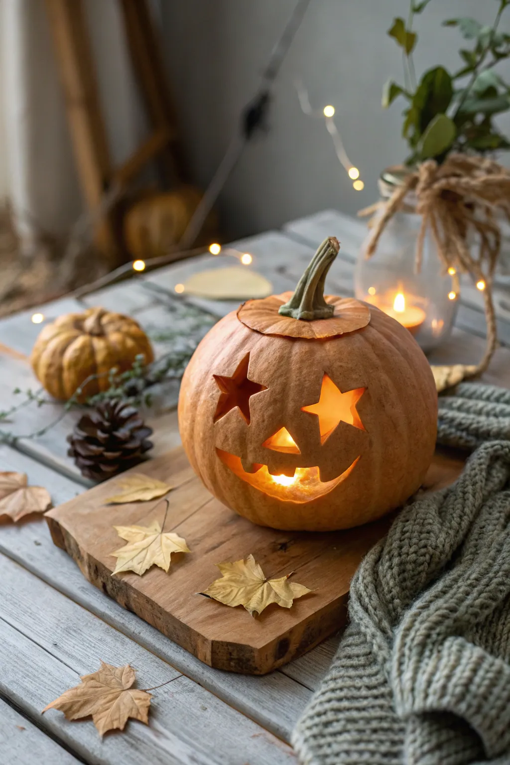 Add a celestial touch with star-shaped eyes. It’s a simple yet magical way to light up your Halloween night.