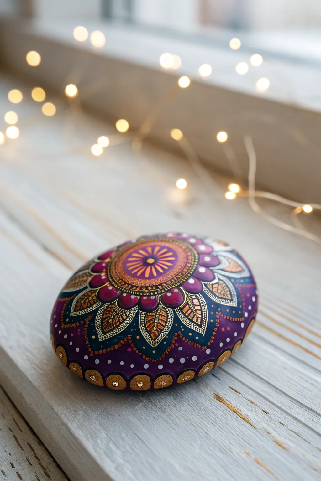 Embrace the charm of mandalas in stone art, infusing vibrancy and calm into your environment.