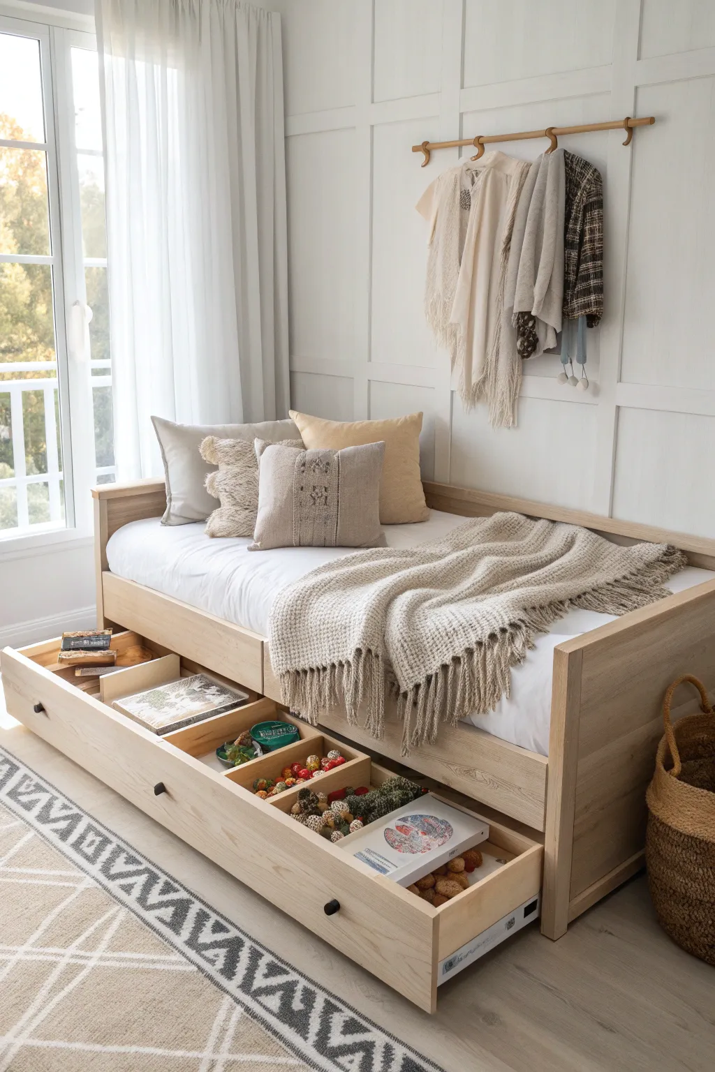 - Wooden Daybed Frame with Storage: Optimize your room with a stylish daybed featuring spacious drawers for extra toy storage.