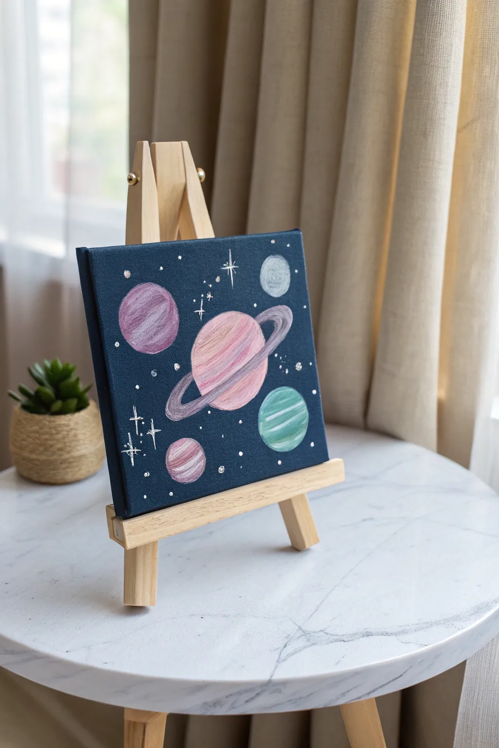 Venture into the cosmos with a portrayal of celestial bodies revolving around a distant star. This offers a fun way to experiment with textures and hues.