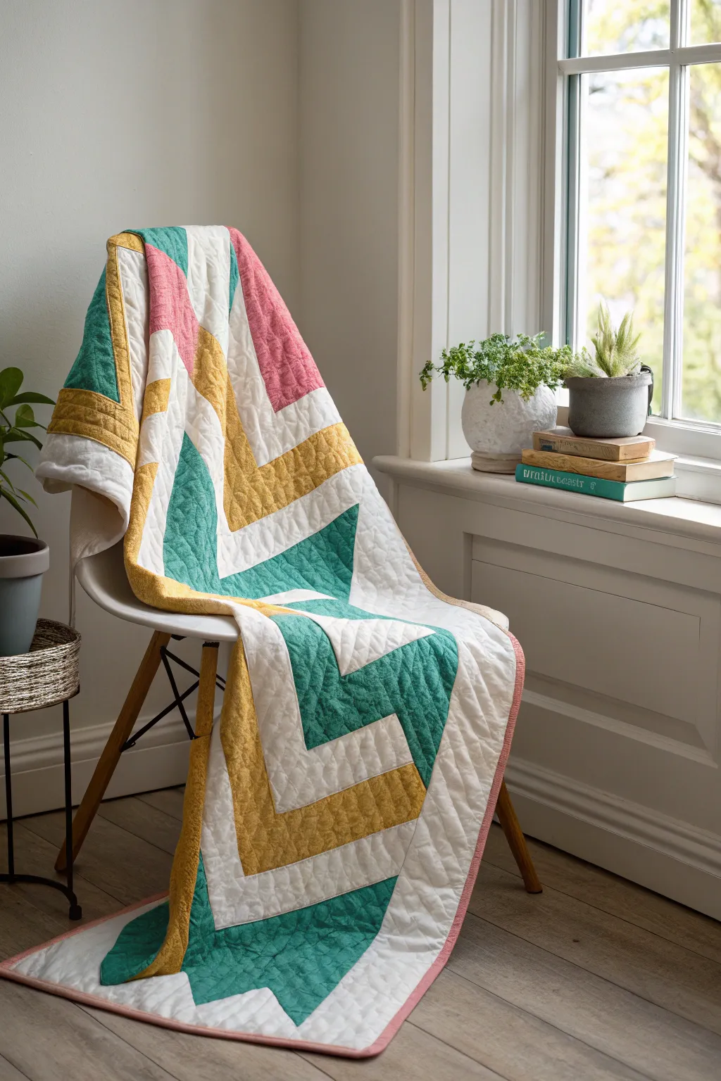 Chevron Chic: Elevate your quilt artistry through a contemporary twist of vibrant, eye-catching designs. #QuiltInspiration #ChevronChic
