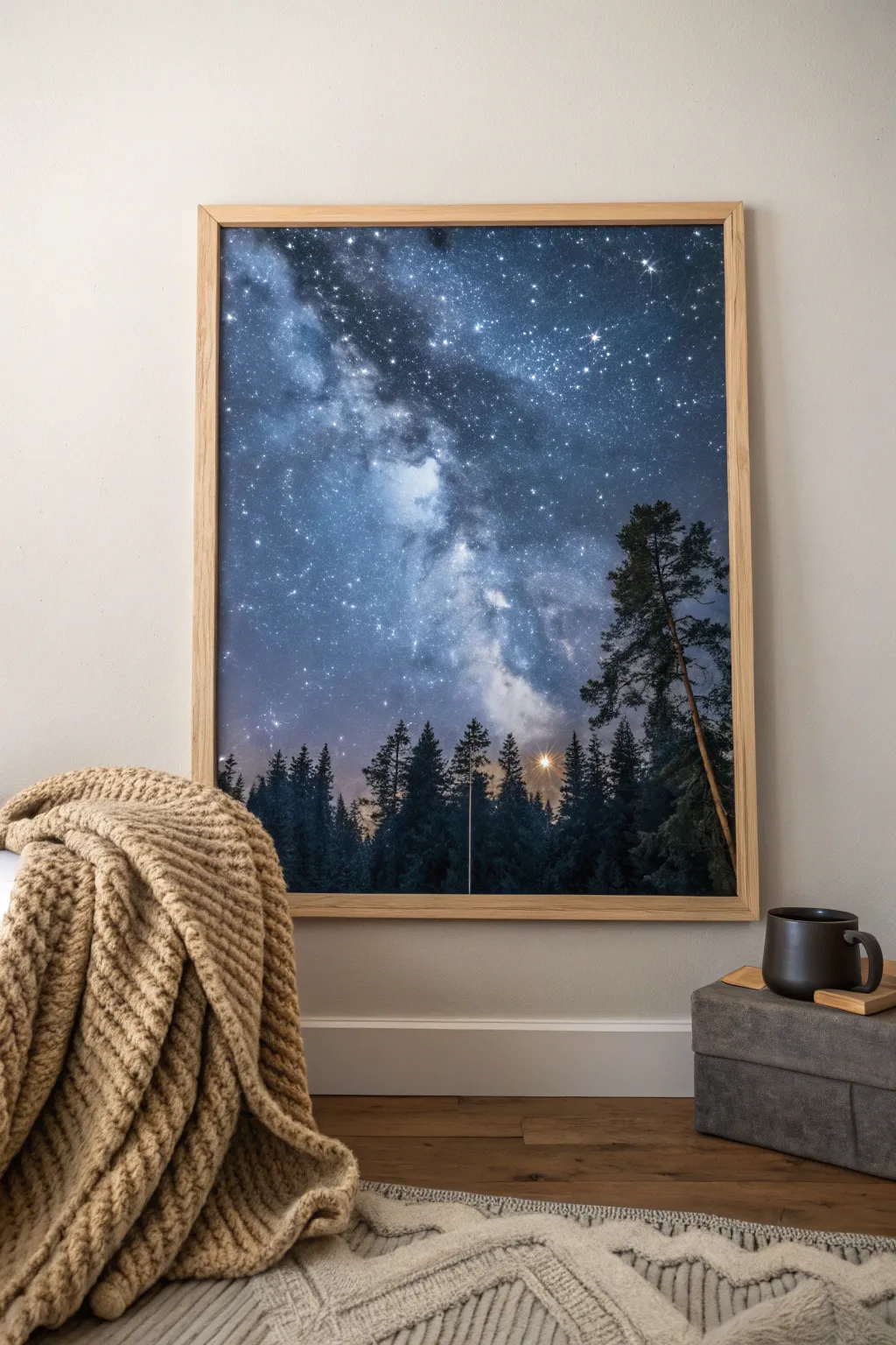 The allure of a starry night sky is undeniable. I’m drawn to painting this because it instantly infuses any area with a sense of peace and marvel.