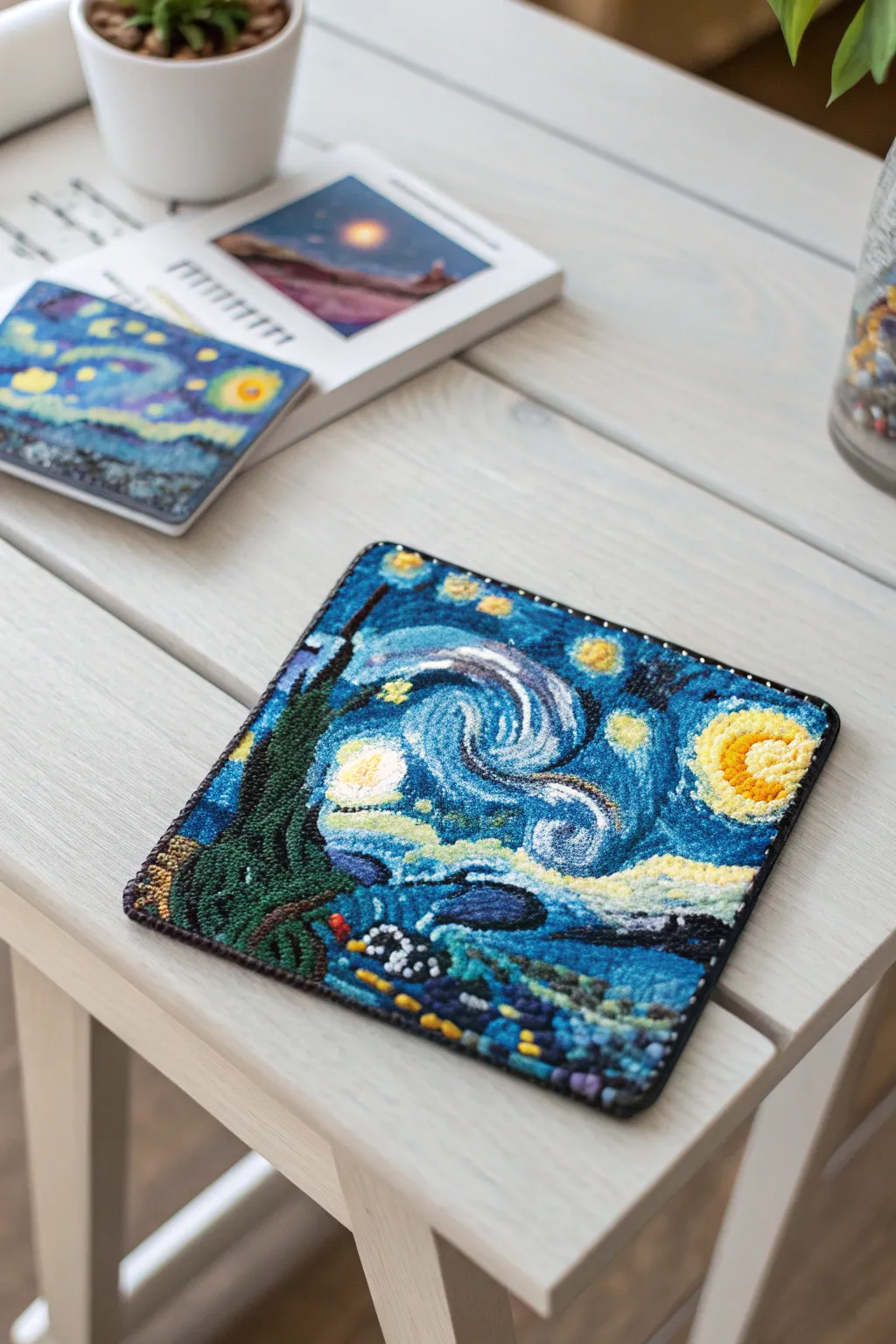 Recreate Van Gogh’s Starlit Evening upon mats for a hint of artistic heritage within your dwelling. They’re flawless for artistic aficionados and fashion an excellent conversation initiator.