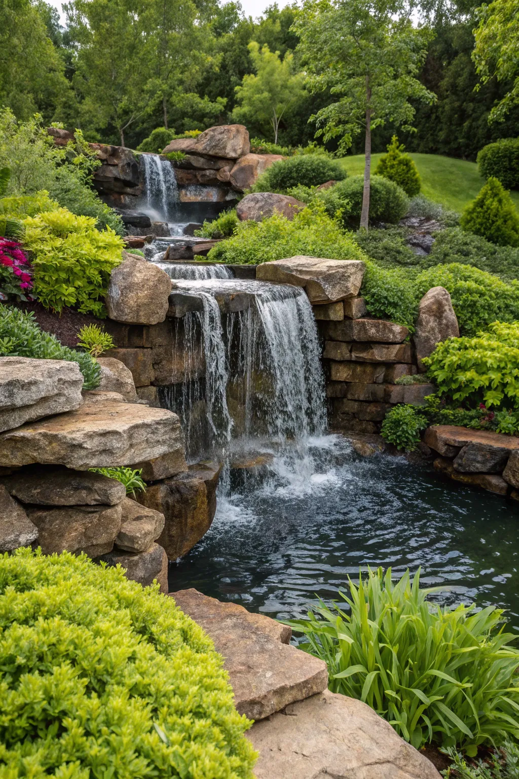 - Illuminated Outdoor Fixtures: Brighten your cascade during the night with waterproof illuminated fixtures for a calm mood.