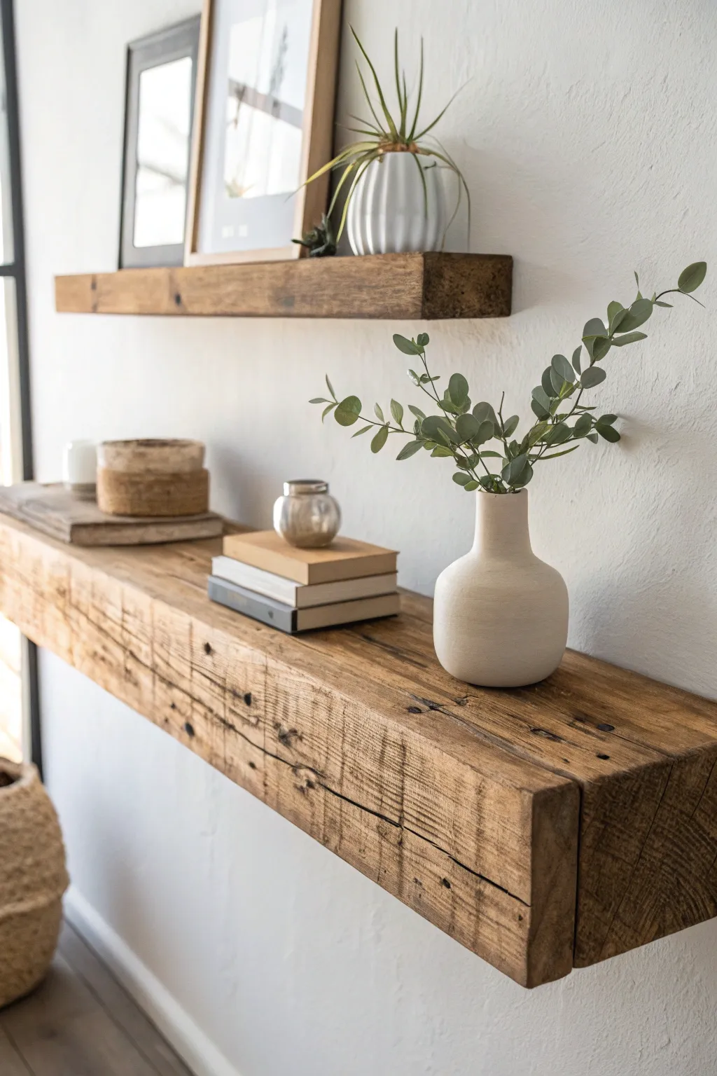 Embrace country elegance with salvaged lumber ledges: ideally suited for infusing any area with organic charm.