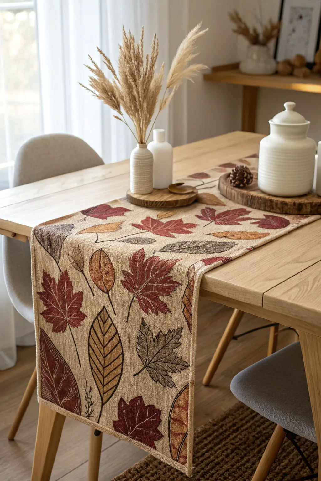 - Autumn Foliage Textile: Design your own table runner with dynamic autumn foliage textile for a comfortable eating atmosphere.