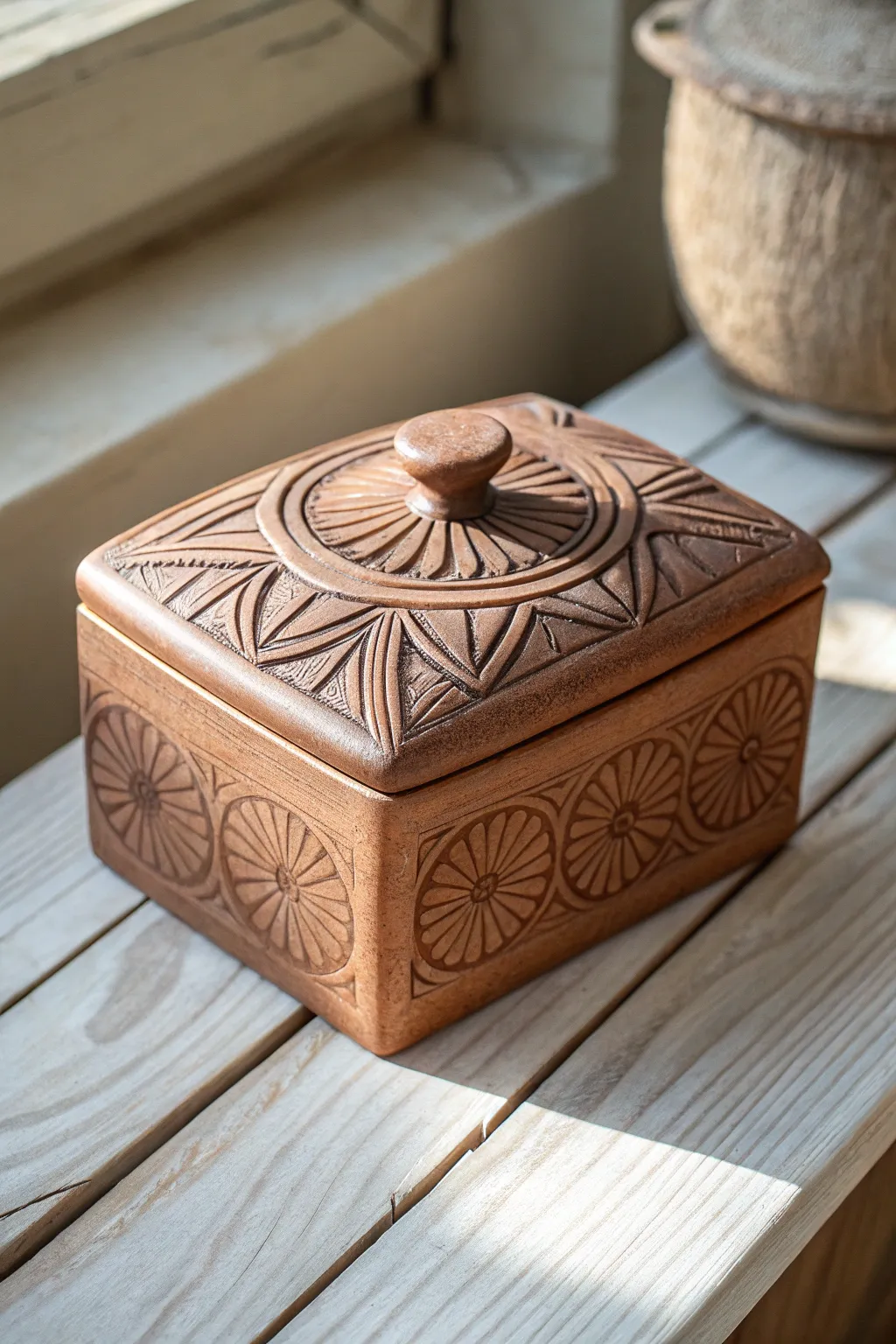 Incorporate leaves or petals by pressing them onto the clay for an organic visual. It’s remarkable how these natural components lend a dash of nature to your box.