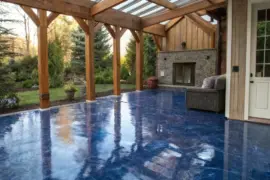 Unleash your creativity with patterned concrete to equip your patio with a distinctive charm. It’s a straightforward way to infuse personality without dominating the area.