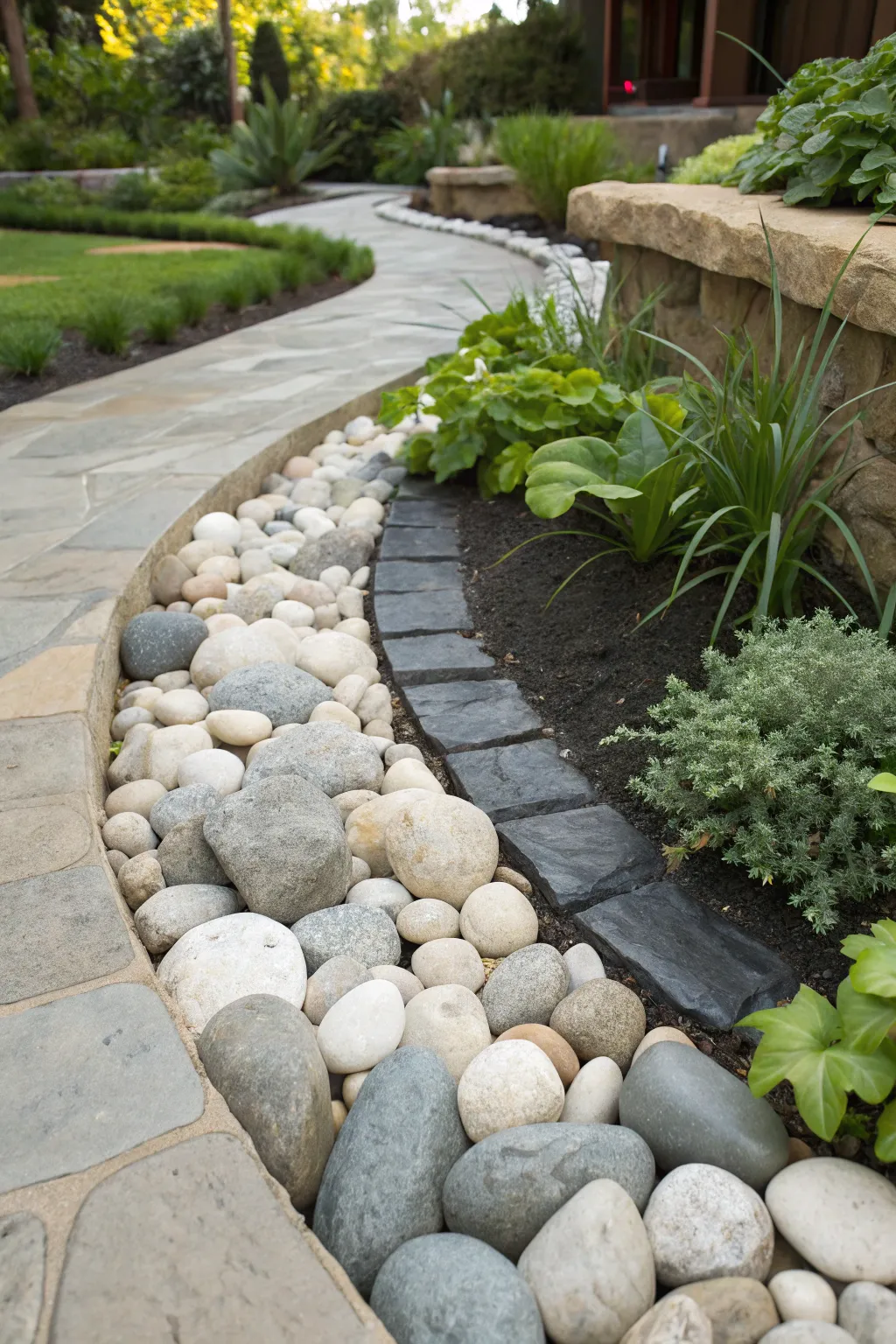 Delve into various rock assortments like setts, cascade pebbles, and planar stones to achieve a textured and individual garden perimeter. In my yard, intermixing rocks yielded a delightful contrast that accentuated each vegetation.