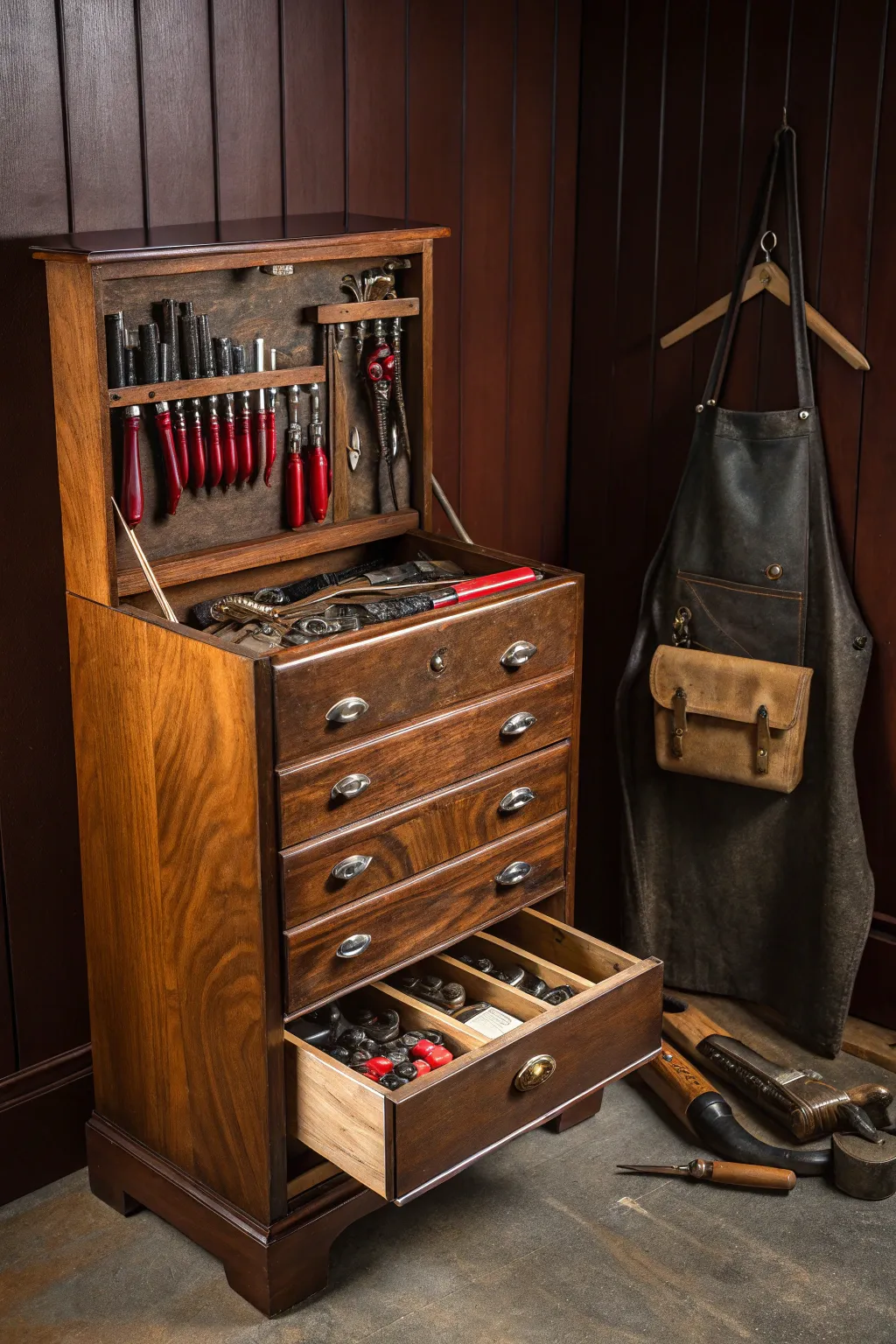 Elevate your workshop with a stylish vertical tool tower that combines functionality with exquisite craftsmanship.
