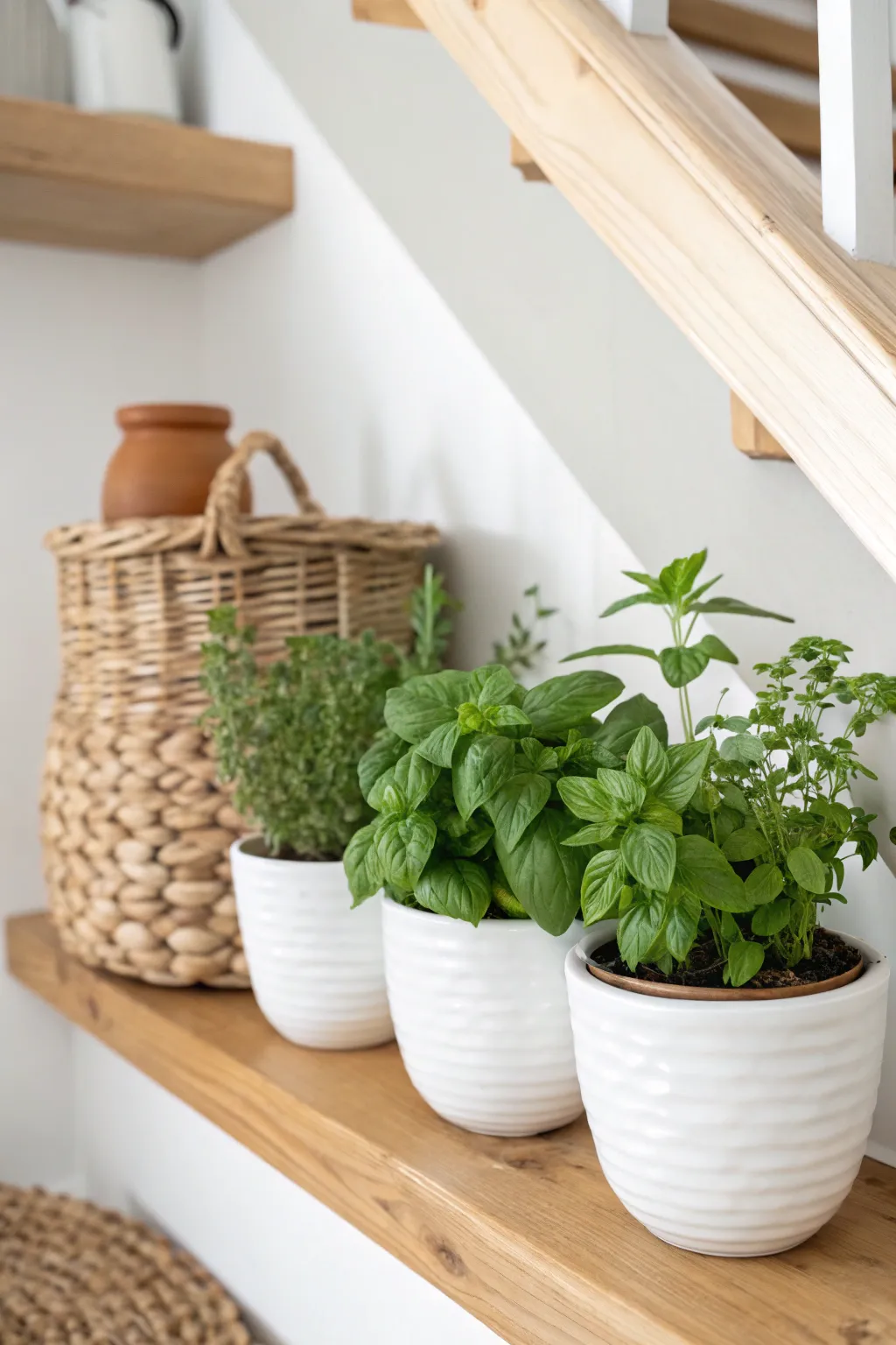 Transform your under-stairs pantry into a serene oasis with fresh herbs readily available. 🌿✨ #ScandiBoho #HerbGarden